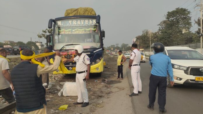 রাস্তায় বাস দার করিয়ে অবৈধ মালপত্র ওঠানো নামানোল বিরুদ্ধে এবার – জংশন ট্রাফিক গার্ডের কড়া অভিযান।